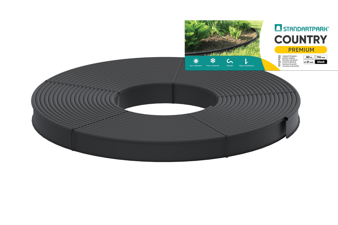 Садовий пластиковий бордюр Country Premium H110 чорний 80м з бортиком